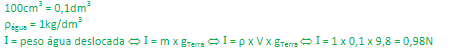 Podemos calcular também a massa do líquido deslocado, a partir do seu volume: