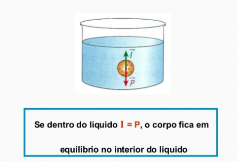 - Qualquer corpo mergulhado num fluído (líquido ou gás), fica sujeito a uma força vertical, com sentido de baixo para cima, exercida por esse fluído. Essa força designa-se por impulsão e representa-se por I.